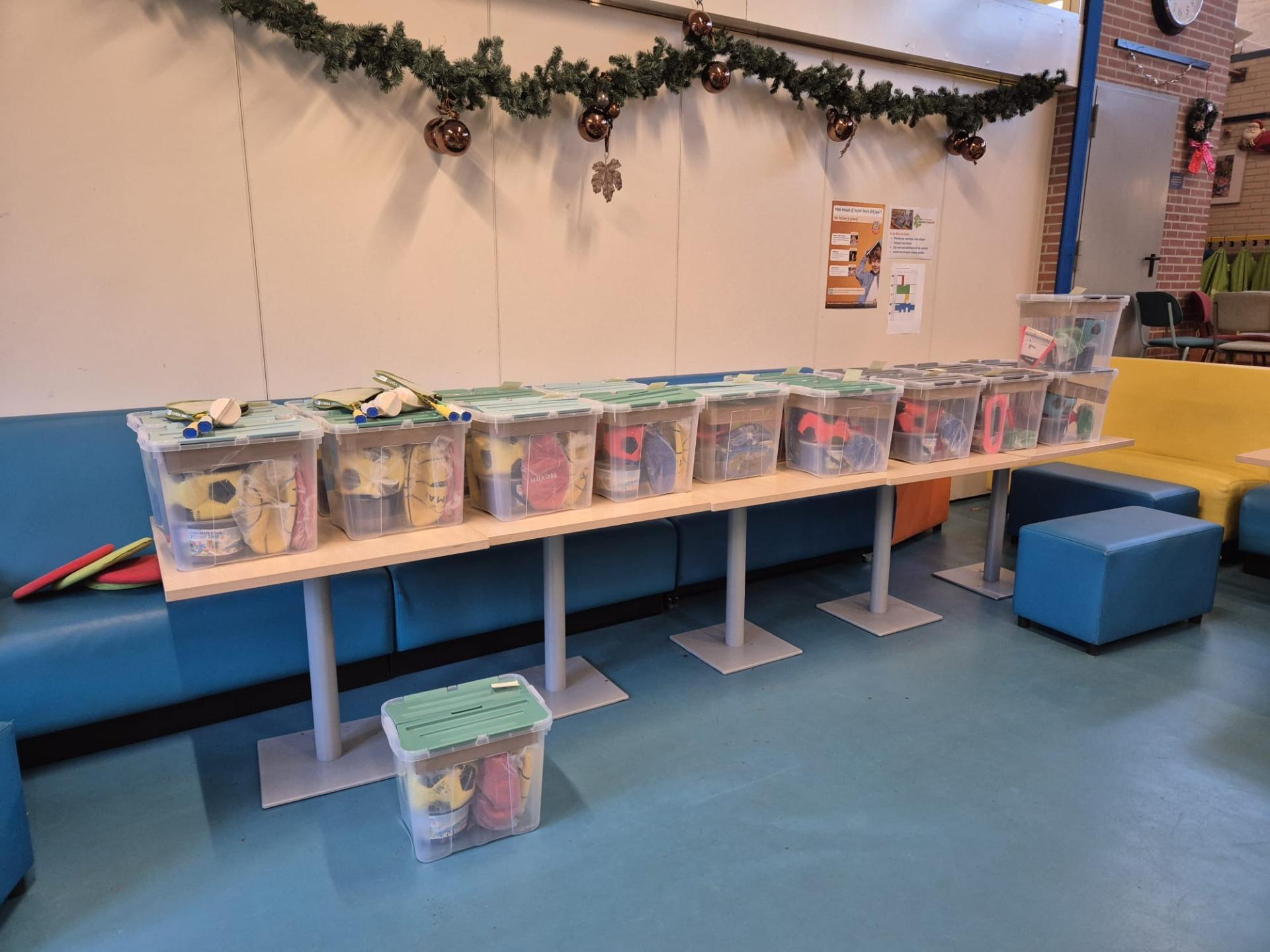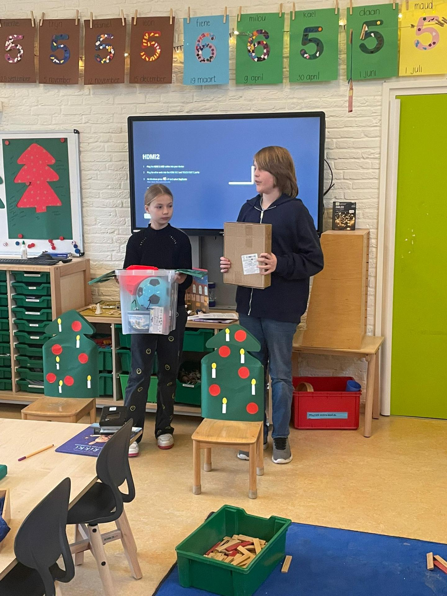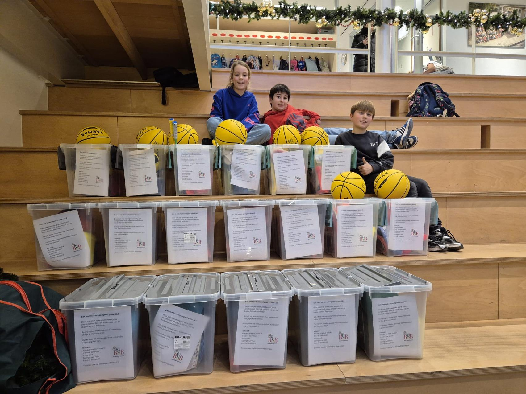 Grote veranderingen aan de schoolpleinen bleken lastig, maar dat hield de kinderraad niet tegen. Zij kwamen met een creatieve oplossing: kerstpakketten boordevol buitenspeelmateriaal. De pakketten bevatten verschillende ballen met een handig ballenrek, springtouwen, stoepkrijt, pionnen én badmintonmateriaal voor de bovenbouw.