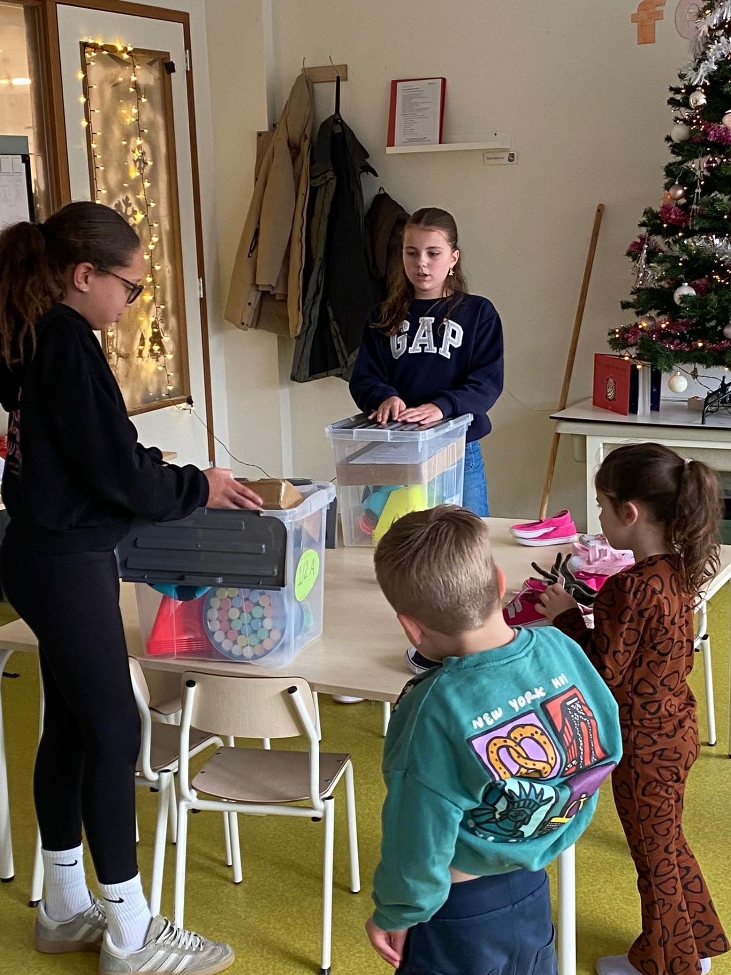 Grote veranderingen aan de schoolpleinen bleken lastig, maar dat hield de kinderraad niet tegen. Zij kwamen met een creatieve oplossing: kerstpakketten boordevol buitenspeelmateriaal. De pakketten bevatten verschillende ballen met een handig ballenrek, springtouwen, stoepkrijt, pionnen én badmintonmateriaal voor de bovenbouw.